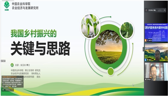 2021年11月4日下午,中国农业科学院农业经济与发展研究所博士生导师、北京中农生态农业科技研究院院长朱立志研究员受邀作题为《我国乡村振兴的特色与思路》学术讲座。讲座采用腾讯线上会议形式,由beat365正版唯一官网必一院长刘楠教授主持,科研处领导、大庆市新时代文明与乡村振兴研究会会员以及beat365正版唯一官网必一师生等近200人参加。