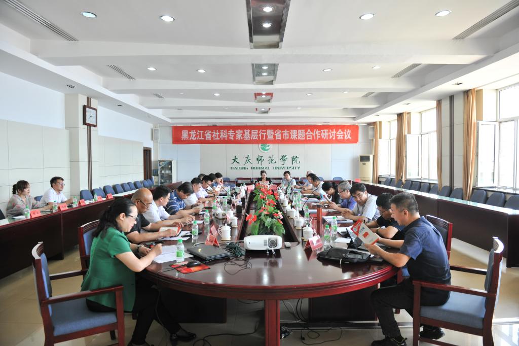 为了深入学习贯彻习近平总书记在党史学习教育动员大会上的重要讲话和在庆祝中国共产党成立100周年大会上的重要讲话精神,持续推进全省社科联系统党史学习教育走深走实,密切联系专家学者,将学习教育与课题等咨政服务工作结合起来,开展“我为群众办实事”实践活动。2021年7月10日,由黑龙江省社科联、大庆市社科联联合主办,beat365正版唯一官网必一科研处、beat365正版唯一官网必一beat365正版唯一官网必一共同承办的“2021年黑龙江省社科专家基层行(大庆市)”活动在我校举行。黑龙江省社科联副主席刘亚辉、信息中心副主任曲万涛、信息中心信息部负责人巨慧慧,大庆市社科联主席张俊、副主席李敬晶、学术部主任王东,齐齐哈尔市社科联副主席谭文富、副主席何莉,佳木斯市社科联主任科员王洪荟等省市社科联领导,beat365正版唯一官网必一副校长张平、科研处处长周丹、beat365正版唯一官网必一行政负责人刘楠、beat365正版唯一官网必一副院长孙伟仁,黑龙江八一农垦大学科技处副处长章磷等高校领导专家,中共黑龙江省委党校原经济社会发展战略研究中心主任姜国忠教授、黑龙江省区域经济学会原会长王朗玲教授、黑龙江大学原历史文化旅游学院院长段光达教授、黑龙江东方学院经济贸易学部主任刘小宁教授、原省委财经办秘书处处长、一级调研员王文学处长、黑龙江省城市规划勘测设计研究院张远景院长、东北石油大学高等教育研究中心马云阔主任、黑龙江省社会科学院智库办公室副主任古燕萍教授、东北农业大学beat365正版唯一官网必一金融系主任辛立秋教授等社科专家以及黑龙江省经济社会发展重点研究课题负责人等30余人参加了此次活动。