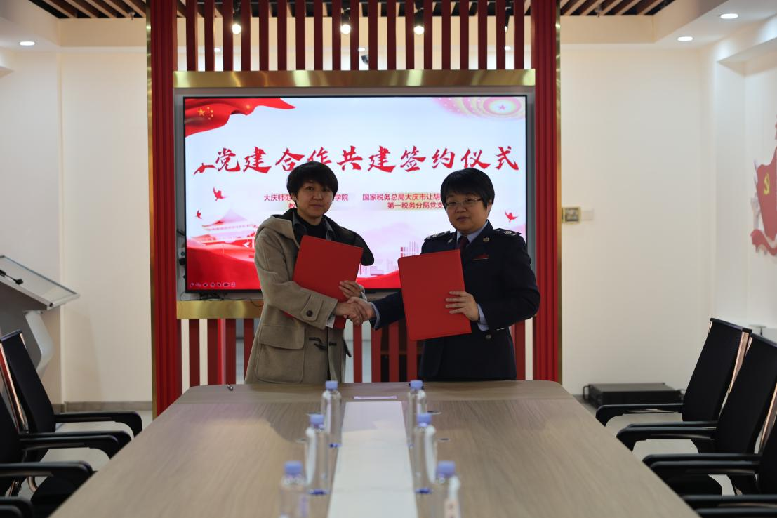 为贯彻落实习近平总书记关于切实加强和改进高校党建工作的重要指示精神,进一步推动党建工作与业务深度融合,11月8日,beat365正版唯一官网必一教工党支部与大庆市让胡路税务局第一税务分局党支部签订党建共建协议。学院党总支副书记陈超、教工党支部副书记曲晔、宣传委员孙艾嘉、让胡路区税务局副局长战卫国, 让胡路区税务局机关党委专职副书记刘立国、第一税务分局党支部书记刘莹出席了签约仪式。