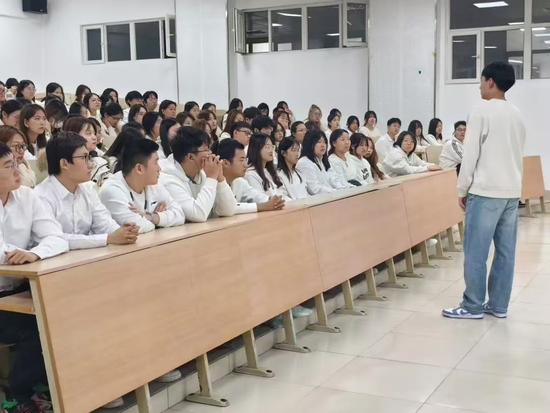 王晨龙学长作为榜样学生,在服役期间表现突出,在生活中严于律己,对待学习也是一丝不苟。宣讲会上,王晨龙学长以放松的心态,幽默诙谐的语言同大家分享自己的见解。他提出了三个关键词:规划、感恩,接受。他通过自己在部队服役的经历,结合自己的切身感受,带着真诚和同学们交流。让同学们在轻松愉快的氛围中了解该如何在大学中找到自己的方向。在最后,王晨龙学长倡导学子们要珍惜来之不易的学习机会,提升自己的综合素质,为实现自己的人生价值而努力奋斗。
