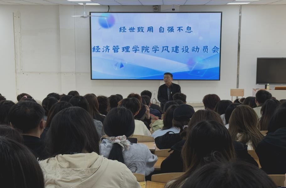大会伊始,党总支副书记陈超从实际出发,列举身边实例强调学生干部应当正确引领班级同学向好发展。他结合学院发展现状,指出学风是学院育人质量的“生命线”,强调学生干部应发挥模范带头作用,从课堂纪律、自主学习、学术实践三方面入手,带领班级同学树立“以学为荣”的价值观。陈超书记特别提到:“步入大学,我们第一是学习知识,第二是学会本领,第三是要学会做人。学风建设不是口号,而是需要每一位同学将‘专注、自律、求真’融入日常,让勤奋学习成为青春远航的动力。”