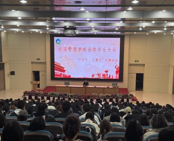 大会最后,学院党总支副书记陈超再次叮嘱全体同学,要将大会精神落实到日常学习中,主动参与学风建设。学院也会通过辅导员监督班务日志、推进“教师引领-学生奋进-家校协同”育人闭环,为大家的成长保驾护航。希望全体经管学子以此次大会为契机,践行“经世济民、追求卓越”的精神,与学院共同进步,为社会发展贡献力量。