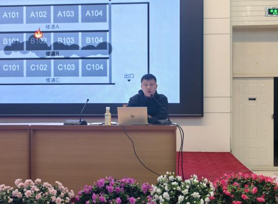 消防安全培训环节同样干货满满。范维科长以真实火灾案例视频为切入点,直观展示火灾事故的严重后果,随后深入剖析电器违规使用、烟头随意遗留、易燃物品堆放等常见起火诱因,重点指出学生宿舍用电安全、楼道消防通道畅通、应急设施维护等关键隐患点。他明确重申“宿舍内严禁吸烟、严禁使用大功率电器、严禁私拉乱接电线”等校园消防管理准则,详细讲解火灾发生时的正确逃生路线规划、自救互救方法等实用技能,将抽象的消防知识转化为可操作、能落地的安全指南,为校园消防安全筑牢了一道坚实的防火墙。