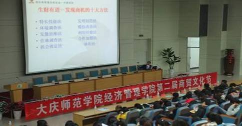 中国人寿大庆分公司中心个险专业化支公司经理金业宏、黑龙江中玉天衡会计师事务所有限公司经理郝文英、大庆滕飞策划机构、百湖团购网副总经理韩箭、大庆新科苑宾馆副总经理邱世玲、大庆昆仑家电副总经理、大庆九天电脑城总经理苏伟、联合国国际劳工组织高级创业培训师、大庆子君企业管理咨询服务中心董事长林子君6位企业家代表光临现场,与beat365正版唯一官网必一院长张平、副院长周丹、副院长吴俊江及beat365正版唯一官网必一全体师生欢聚一堂,共庆商贸文化节盛大开幕。