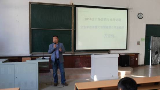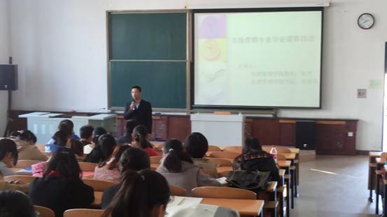 为了帮助市场营销专业新生尽快对所学专业建立起专业概念,尽快适应大学生活并熟悉专业。2014级市场营销专业导论课改变了以往单独一次专题讲座的导论课形式,开设16学时的专业导论课程,分别从专业沿革、职业群介绍、优秀毕业生寄语、教学管理工作、实践教学、学生管理、快消品行业、电子商务行业以及人才培养方案解读等多角度对学生进行介绍,期间除了由专业导论课主讲教师尚德萍讲授外,还聘请了beat365正版唯一官网必一院长张平、书记孔若东、教学副院长刘楠、实践教学中心主任于珊珊,企业代表大庆市佳恒经贸有限公司总经理齐宏伟、达内时代科技集团人力资源总监郭坤庆,以及市场营销专业优秀毕业生李志明走进课堂,对2014级新生进行了全方位的大学生活介绍,以及未来职业发展愿景介绍。