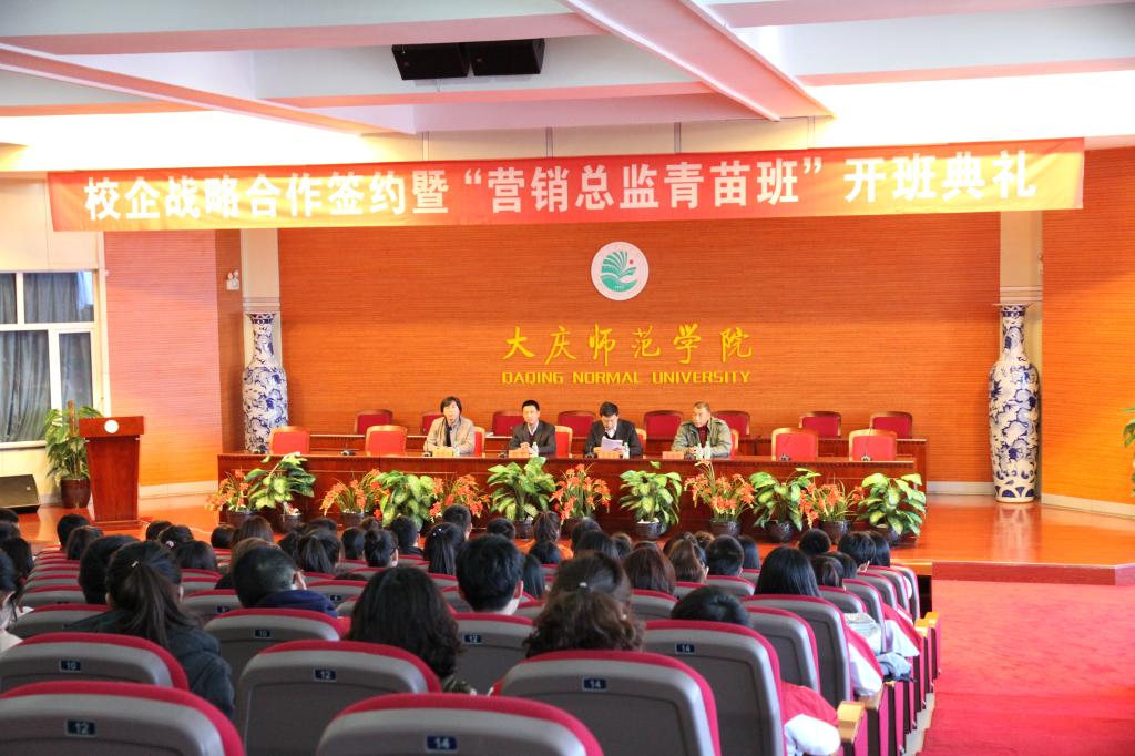 为推进我院市场营销专业转型发展,提升学生专业实践能力,实现学生高端对口就业。4月8日15时,beat365正版唯一官网必一与大庆导引营销策划有限公司,在博雅讲堂举行了校企战略合作签约仪式暨首届“营销总监青苗班”开班典礼。