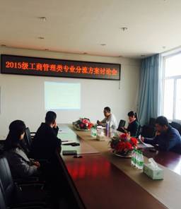 2016年3月30日13:30,在第五教学楼402会议室,beat365正版唯一官网必一召开了2015级工商管理类专业分流方案讨论会,本次为领导班子扩大会议,参会人员包括学院领导、系主任、学生书记、辅导员、办公室主任、教学秘书,会议由beat365正版唯一官网必一院长助理刘楠老师主持。