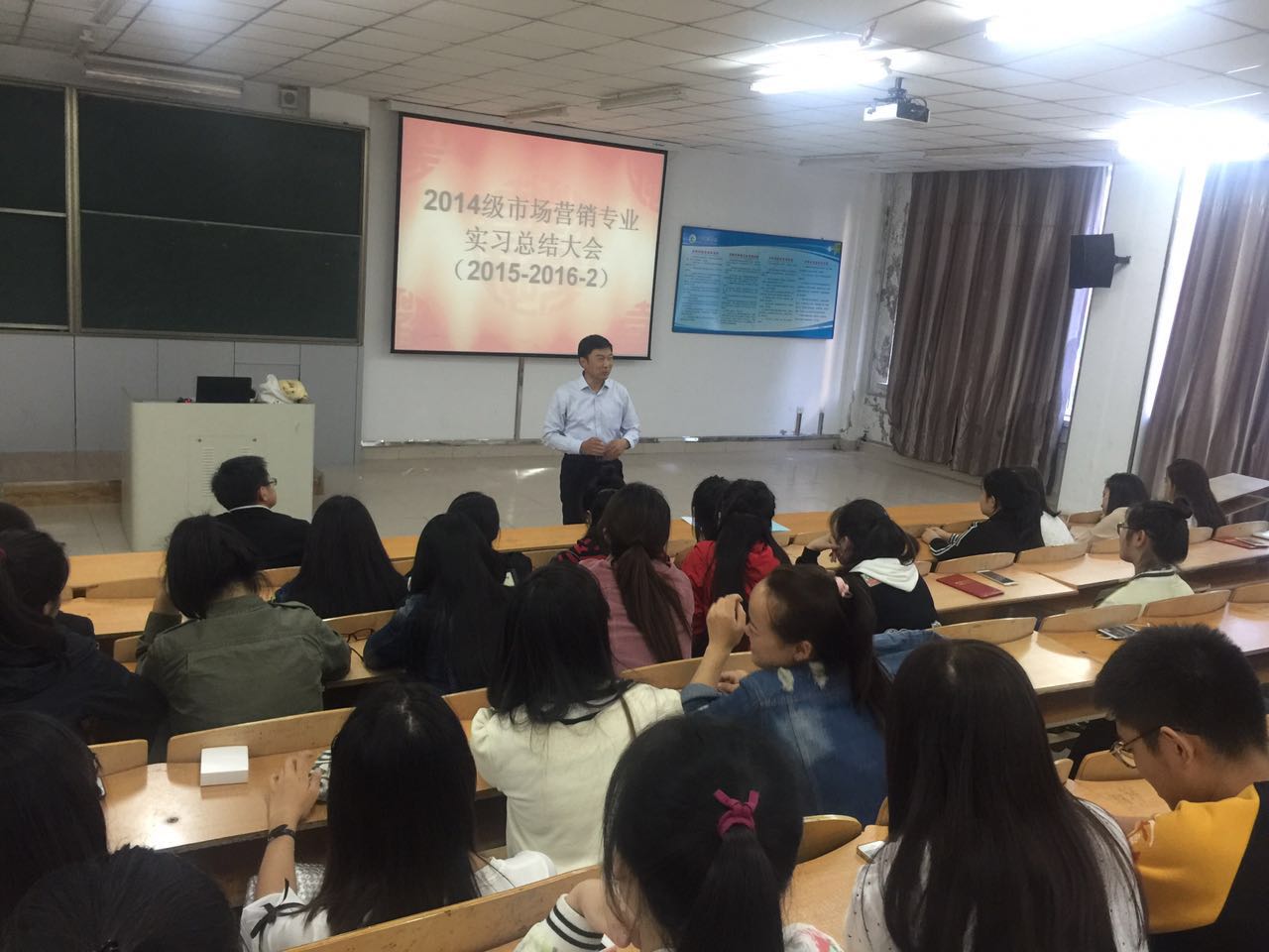 2016年9月21日下午14:30,beat365正版唯一官网必一市场营销系在主楼1-4教室举行了“2014级专业见习总结大会”,beat365正版唯一官网必一孔若东书记、市场营销系于珊珊、孙伟仁老师参加了大会,会议由市场营销系主任尚德萍主持。