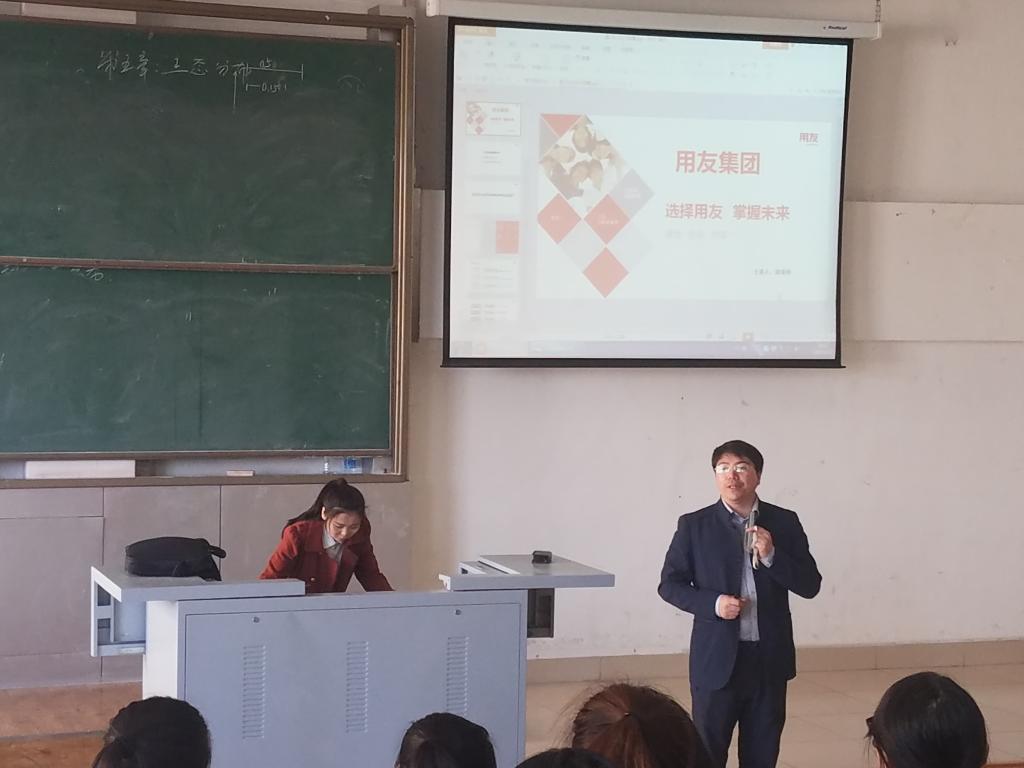 4月12日在主楼3-2教室,财务管理专业召开企业宣讲即14级15级财务管理专业学生实习动员大会,黑龙江筑财财务软件公司大庆分公司和用友新道科技有限公司来校针对14级15级财务管理专业实习进行了宣讲,企业领导分别介绍了各自公司的状况和学生实习岗位的工作内容以及工作待遇,用友新道科技有限公司还当场对有意去公司实习的14级财务管理专业学生进行了面试。企业宣讲后,财务管理系主任杨晓玉老师对学生进行了实习动员,鼓励学生要充分利用到企业实习的机会,将理论与实践相结合,努力提高实践工作能力,同时利用实习机会丰富社会经验,提高自身综合素质,为将来就业打好基础。