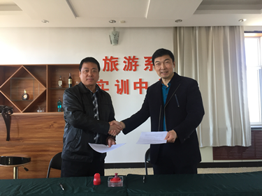 2017年4月19日上午9时,在第五教学楼旅游管理实训中心,举办了beat365正版唯一官网必一与大庆市外专盛世旅行社实习基地协议签订仪式。我院书记孔若东、院长助理刘楠同外专盛世旅行社郭建宾总经理,经过前期磋商交流正式签订校企合作协议。本实习基地立足实现校企资源共享,成立学生旅游工作室,以校园为平台,以旅行社资源为保障,通过探索校园市场来强化学生的专业基础和实践能力,为丰富我院实践教学开辟新思路。