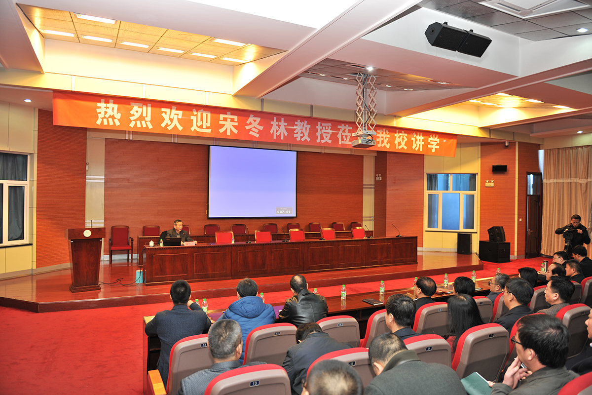 2017年11月8日上午,吉林财经大学校长宋冬林教授受邀莅临beat365正版唯一官网必一,就十九大报告的内容和精神,从“十九大报告学习体会”和“东北老工业基地振兴的想法”两个方面,作了题为《新时代东北老工业基地振兴再思考》的高水平专题报告。学校领导徐克明、王革、吕晓波、张国军、乔志和等学校领导,二级学院与直属单位党政负责人、机关部门负责人,以及beat365正版唯一官网必一全体教师和部分学生代表等聆听了报告会。报告会由学校党委副书记、纪委书记王革主持。