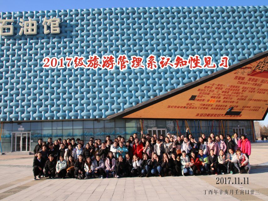 2017年11月11日早上8点,2017级旅游管理专业85名学生在陈超、张凤岩两位老师的带领下来到大庆城市规划馆、大庆博物馆、石油馆开展新生的专业见习活动。