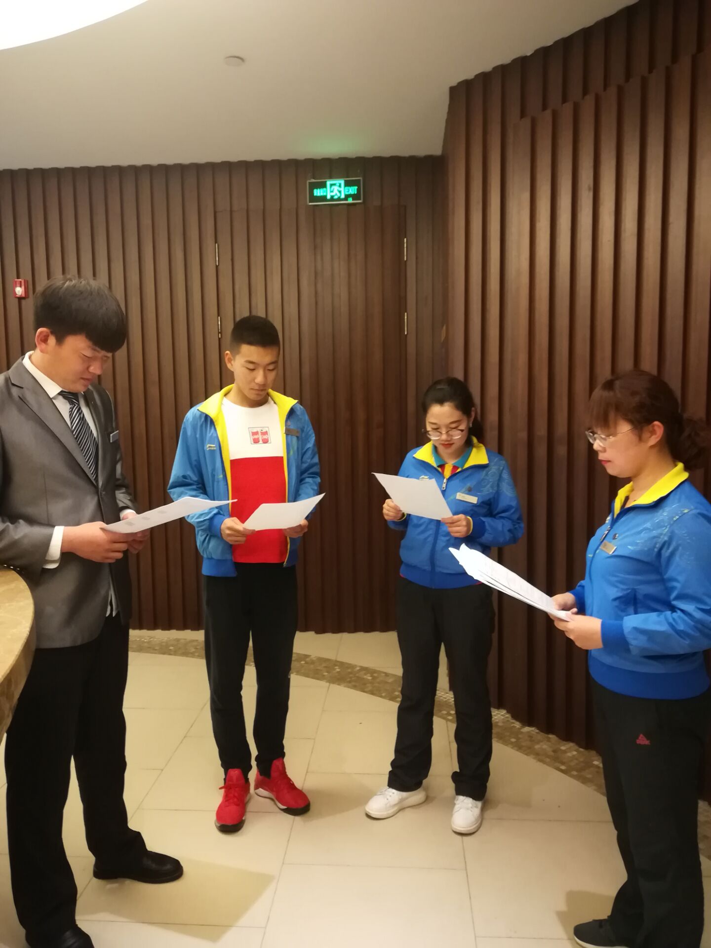 在申请实习酒店的时候来到了北戴河华贸喜来登酒店。5月10日,刚到酒店第一天,经理把我们同行十人分配到各个部门,各个职位。我的职位是前厅部健身中心前台。主要处理游泳馆和健身房的各项工作。具体工作就是在前台记录每个客人的来回时间,给客人准备浴巾,保持更衣室、健身房和游泳馆的卫生。售卖游泳用品。