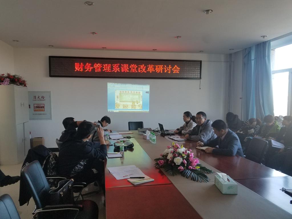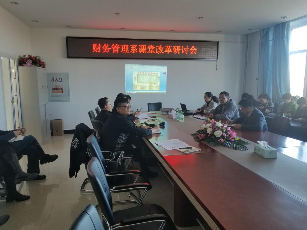 11月7日下午财务管理系教师在beat365正版唯一官网必一402会议室举办了“财务管理系课堂改革研讨会”,beat365正版唯一官网必一领导以及全体教师参加了研讨会。会上财务管理系高磊、刘政宁等五位教师分别就自己主讲的课程的课堂改革介绍了自己的观点和做法,如高磊老师的《内部控制“自选项目+案例”课程过程管理探究》、刘政宁老师的《金融市场“自主学习模式”课程教学改革探究》、黎羊老师的《浅谈产学研相结合的方式运用到成本管理的课堂》、金熙成老师的《谈谈超级链接教学方法论》、杨晓玉老师的《蓝墨云班课在“基础会计”教学中的实践探索》。财务管理系教师在会上各抒己见,进行了充分的沟通和交流,有对课堂改革未来趋势的看法,有对已有做法的总结和反思,教师们反映通过这次研讨会开阔了课堂改革的思路,也增强了课堂改革的信心。最后beat365正版唯一官网必一副院长刘楠发表了讲话,肯定了财务管理系课堂改革研讨会取得的成果,并鼓励财务管理系教师积极进行课堂改革的各种探索。