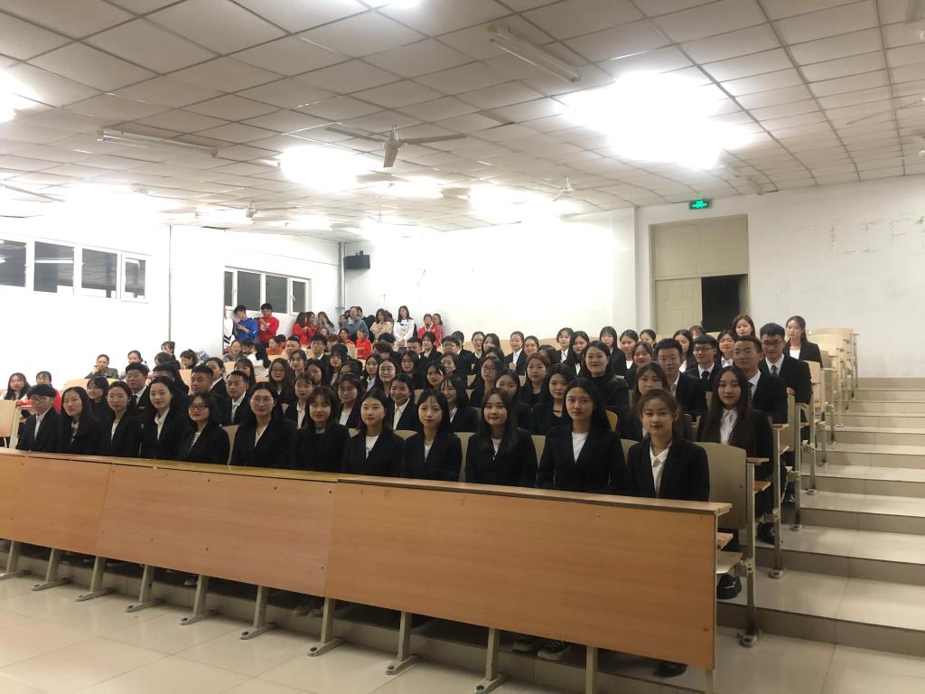 接下来的环节是酒店实习经验分享,由钟荧、林璐、梁微、赵朔、刘仙胜、锁金彭、蛮帅作为代表分享。首先他们分享了实习心路历程,经历了开心激动,刚到岗位的凌乱,实习大夜班……一路走来,一路汗水,一路收获。最后总结了一些经验分享:调整作息;踏实努力;机灵仔细;保持好心情;有情况及时沟通。相信这些宝贵的经验都将会在以后的工作中挥发出非常重要的效果。