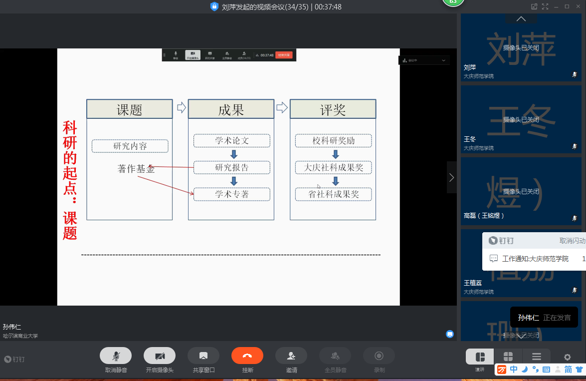 会上,孙伟仁副院长首先从科研项目、论文著作、科研获奖、科研队伍、科研平台及社会服务等方面,全面介绍了beat365正版唯一官网必一的科研基本情况,并对上一年度全院科研工作业绩进行了总结。2019年,我院省自然科学基金立项1项,实现了省自然科学基金项目上零的突破;省社会科学项目、省经济社会发展重点课题有效申报、立项数量创新高,并有5个省级项目顺利结题;有1篇学术论文被人大复印资料全文转载,实现上论文转载上的突破;在百佳出版社出版学术专著2部。他强调,虽然我院在上一年度科研工作中取得了一些成绩,但我院在科研方面仍然存在教师科研积极性不高、科研水平不强、团队合作效率不高及服务经济社会发展能力不足等问题。针对下一步的科研工作,孙伟仁副院长提出了五条工作思路:一是加强机制建设,完善激励制度;二是凝练科研方向,加强团队建设;三是提前谋划布局,加强科研管理;四是加强培训交流,提升科研能力;五是积极对外沟通,拓展项目来源。最后,他对学院今年的重点学科申报、科研团队建设、省级科研项目申报、横向项目开发、核心论文发表、大庆市优秀社科成果奖及黑龙江省社科成果奖申报等重点工作进行了具体地部署和安排,并从老师们关注的职称评审、绩效考核、经费支持等方面详细分析了申报科研项目、积攒科研成果的重要性。