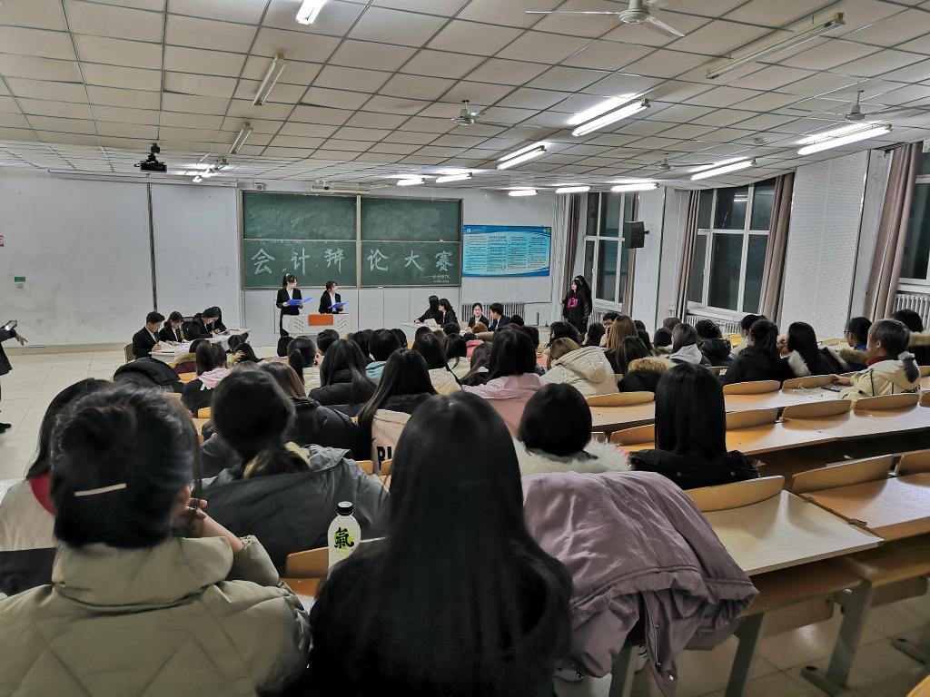 本次比赛分为开篇立论,攻辩,自由辩论,总结陈词四个环节。主持人简短的开场后,由正方一辩开篇立论,其后反方一辩陈述观点。攻辩阶段,首先由正方二辩与反方三辩提出问题,双方辩手旁征博引,相互间进行了激烈的交锋。激烈的攻辩环节结束后,双方辩手稍作休息,欣赏财一和财二同学的才艺表演。在最扣人心弦的自由辩论环节,双方辩手你来我往,针锋相对,进行着思维的碰撞,妙语连珠式的一问一答,精彩纷呈样的正辩反论,非常激烈,现场掌声连连响起。最后总结陈词,由双方四辩进行总结。比赛环节到此结束,两个班的同学还准备了精彩的节目。