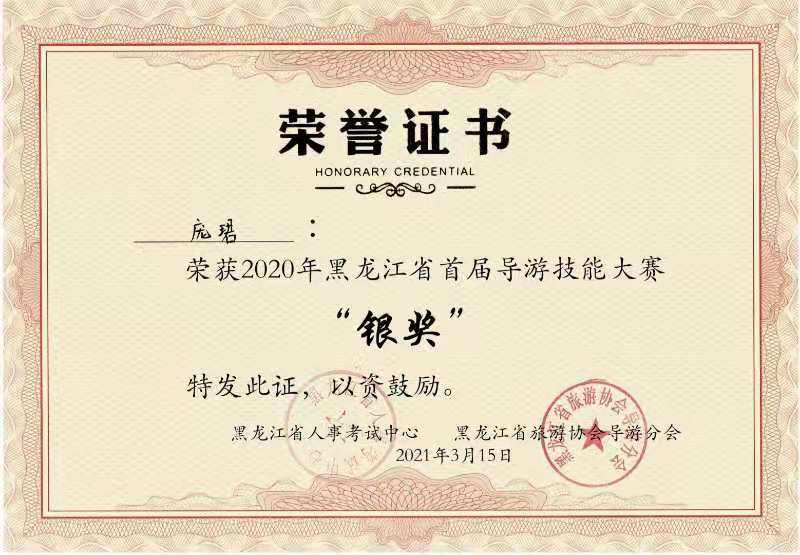 2020年黑龙江省首届导游技能大赛由黑龙江省人事考试中心主办,黑龙江省旅游协会导游分会承办。beat365正版唯一官网必一beat365正版唯一官网必一是此次大赛的协办单位,大庆市导游协会负责组织和指导学生参赛。此次大赛分为初赛、复赛和决赛。初赛采用网上投票评比,复赛和决赛线上进行。为了更好的备战,beat365正版唯一官网必一旅游管理系郝毓业老师指导学生精心准备。经过激烈比拼,齐林同学凭借在决赛和复赛中顺畅讲解和精彩才艺表现,最终荣获“金奖”,这是我校学生首次获得省导游大赛金奖,实现了零的突破。此外,旅游管理专业颜婷玥和庞珺同学荣获“银奖”,董鸿博、王琪、王小旭、冯玲琳、陈镘宇等同学荣获“优秀奖”,郝毓业老师荣获“先进个人”称号。此次大赛在获奖等级及数量上都获得了较大突破。