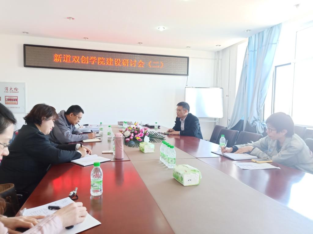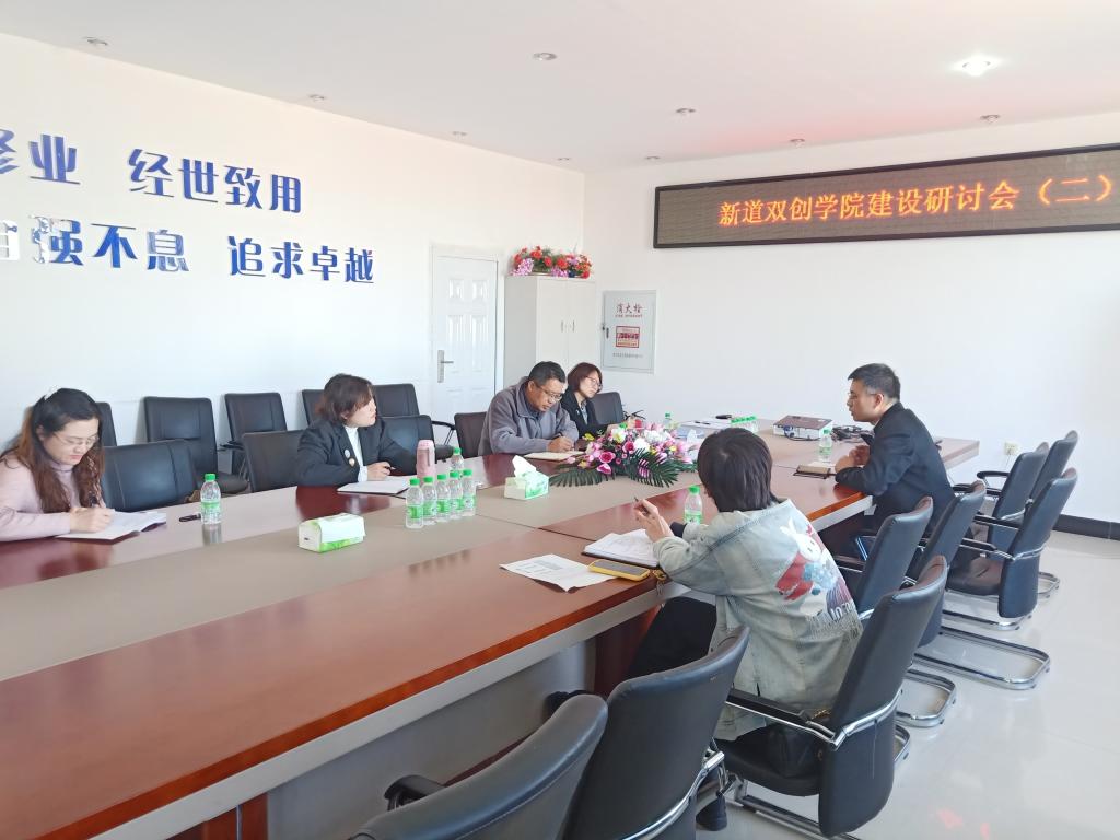 为切实推进beat365正版唯一官网必一新道双创学院建设落实工作,2021年4月20日在第五教学楼402会议室召开了“新道双创学院建设研讨会第二次会议”。会议由beat365正版唯一官网必一院长刘楠教授主持,教务处实践教学科王凤嫔科长、法学院院长杨铁军教授应邀出席会议。