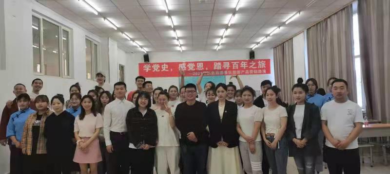《旅游景区管理》课程为了提升学生理论结合实践的能力和提高知识实践应用能力,开展了红色旅游景区旅游线路展销模拟和学党史,感党恩,踏寻百年之旅——2021年红色旅游景区旅游产品营销路演活动。红色旅游景区旅游线路展销模拟于5月12日下午在beat365正版唯一官网必一就业大厅进行,活动从现场人员分工、红色旅游线路设计主题、展台设计布置、展销氛围营造、现场促销手段、展销方案可行性、网上营销活动效果及现场展台清洁等方面进行考核,各组学生都能按照要求超预期完成各项任务,达到了较好的教学效果。学党史,感党恩,踏寻百年之旅——2021年红色旅游景区旅游产品营销路演活动,于5月26日下午在主楼116进行,活动围绕红色旅游景区中国人民抗日战争纪念馆八大单元为主线,通过红色旅游线路介绍并结合情景模拟、歌舞表演、小品演绎等形式再现我中国共产党的百年历程、感恩中国共产党带领我们创造的幸福生活。通过此活动学生进行了党史教育,也深化了对旅游线路产品营销知识理解,提升了学生参与课程的积极性,达到了预期的教学效果。