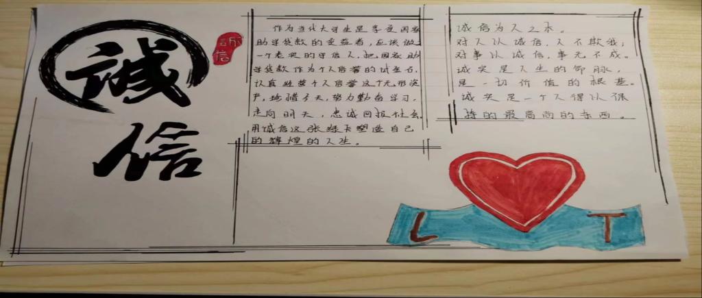 活动作品以文字和图画相结合的方式,从不同角度展现自己的内心世界,表达了对诚信与感恩的认识与感悟。