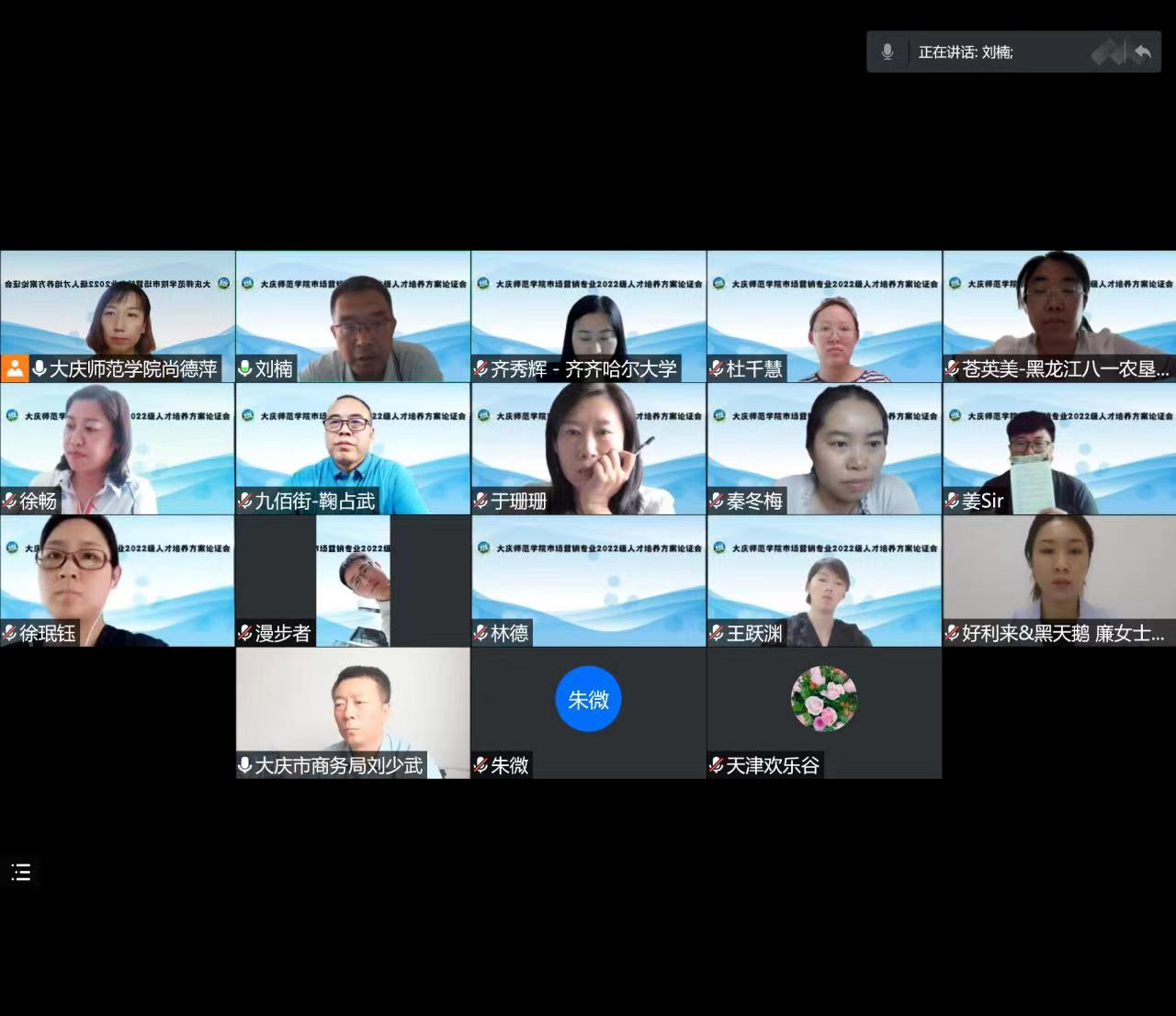 2022年7月15日13:30-15:30,市场营销系召开了2022级人才培养方案论证会,会议采用腾讯会议的方式,邀请了政府、合作企业和高校的专家10位,大庆市商务局电子商务科科长刘少武、齐齐哈尔大学市场营销系主任齐秀辉、东北石油大学营销与旅游系主任徐畅、黑龙江八一农垦大学市场营销系主任苍英美、北京巨量引擎网络技术有限公司巨量部于珊珊、北京市好利来&黑天鹅餐饮管理有限公司招聘部负责人廉美琦、天津欢乐谷人事部经理刘喆、哈尔滨润牛商业有限公司人力资源部主任王雪、大庆九佰街网络科技有限公司董事长鞠占武10专家和beat365正版唯一官网必一行政负责人刘楠、教学负责人李媛媛、科研负责人孙伟仁以及市场营销系全体教师参加了论证会,会议由市场营销系主任尚德萍主持。