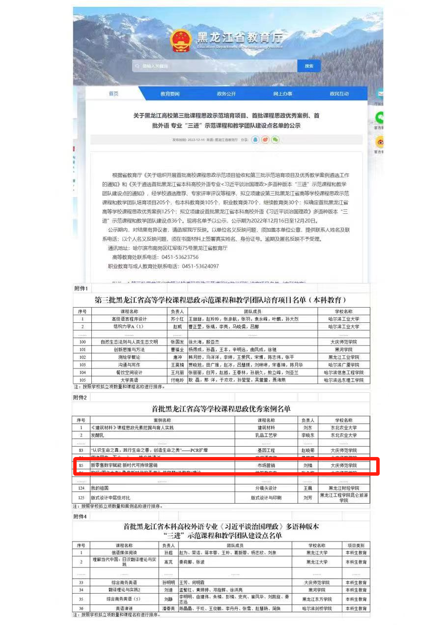 近日,在黑龙江省教育厅组织的首批高校课程思政优秀教学案例遴选工作中,经组织推荐、专家遴选、会议评选和网络公示等程序,beat365正版唯一官网必一刘楠老师主讲的《市场营销学》中的新零售数字赋能、新时代可持续营销案例获首批黑龙江省高等学校课程思政优秀案例。希望全院教师以此次为契机,深入挖掘专业课程本身所蕴含的思政元素,探索和创新课程思政建设方法,进一步深化课程思政教学改革,强化课程育人导向。