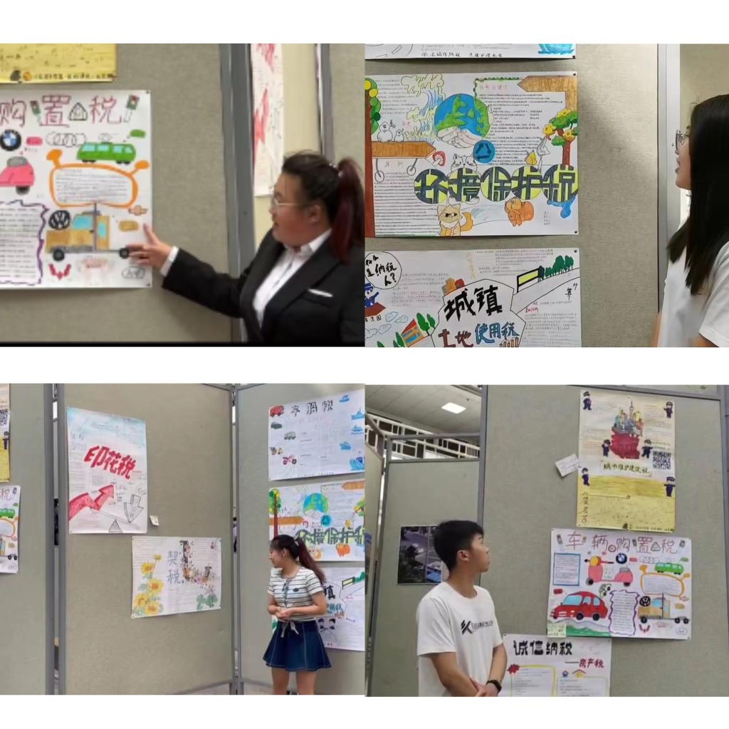2023年6月7日14时,beat365正版唯一官网必一在图书馆一楼大厅举行税收政策宣传活动。beat365正版唯一官网必一教学院长李媛媛、主讲教师高磊副教授、让胡路区税务局税务专员共同参加了本次活动。此次活动是《中国税制》课程思政教学内容的集中展示活动。活动共分为三个环节,第一个环节由高磊老师介绍本次活动的主要内容、活动目的和意义,第二个环节由学生代表讲解宣传海报制作的主要内容和宣传目的,本环节共有10个小组代表对小组制作的税收宣传海报进行讲解,本次活动共有20个学习小组制作了宣传海报,海报内容涉及我国主要税种中的增值税、所得税、消费税、资源税、车辆购置税等,学生通过海报向同学们介绍什么是增值税,增值税在国民经济发展中的重要性,我国开征的资源税都对哪些资源征税,新开征的环保税政策制定背景是什么,等等。第三个环节由税务局税务专员对同学们做的宣传内容进行点评,税务专员给与同学们此次活动高度评价,认为学生们的宣传活动特色鲜明,内容丰富,很好的宣传了国家税收在经济发展中的重要性,并提出中肯的建议。认为这类活动可以成为税务局与我校长期合作开展的活动。