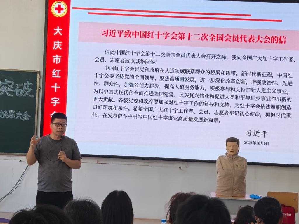 培训开始前,大庆市导游协会郝毓业会长做了培训要求,红十字会工作人员讲述了培训内容安排。