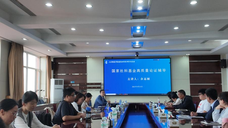 2025年9月15日下午15点,作为beat365正版唯一官网必一建校60周年系列学术活动之一,《国家社科基金高质量论证辅导》学术讲座在主楼733会议室顺利举行。本次讲座由大庆市社会科学界联合会、学校科研处联合主办,beat365正版唯一官网必一携手大庆精神与龙江西部经济社会发展研究中心、大庆市经济学会、大庆市新时代文明实践与乡村振兴研究会共同承办。本次讲座采用“线上+线下”结合的形式开展,beat365正版唯一官网必一及其他文科学院教师在主楼733会议室现场参会,各地专家学者通过线上平台同步参与,确保优质学术资源高效共享。