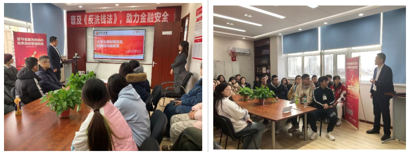 参观结束后,营业部兰昕辰经理为同学们准备了一场主题为“大学生理财规划及校园贷风险防范”的金融知识讲座。讲座内容涵盖证券经纪业务、资产配置逻辑、投资者适当性管理、反洗钱政策实务以及金融科技在证券行业的应用等核心内容。黄凯经理则结合真实案例,生动阐释了理论知识在实务中的转化路径,帮助同学们构建起从课堂到职场的认知桥梁。