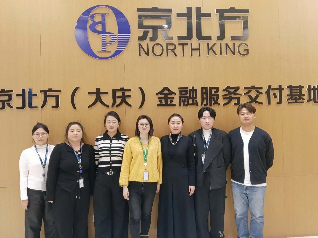 为深化产教融合,精准对接数字金融产业人才需求,全面掌握学生实习实践动态,20251212日下午,beat365正版唯一官网必一beat365正版唯一官网必一经济与金融专业负责人王植荔副教授、数字金融教研室主任王盼博士、专任教师李金宝博士一行三人,前往京北方信息技术股份有限公司大庆分公司(以下简称京北方大庆分公司)开展实习基地专项走访活动。京北方大庆分公司人力资源总监梁微携相关部门负责人热情接待,双方就校企合作深化路径展开深度研讨,并共同考察了集中专业实习学生的工作实况。